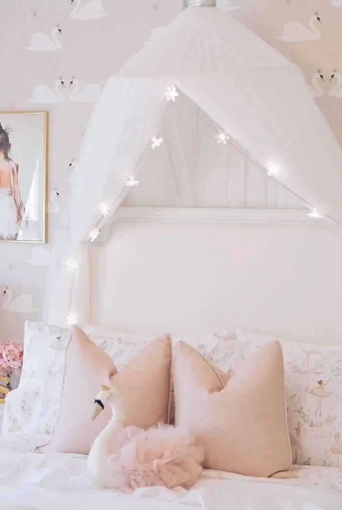Any little girl would love to have a canopy with lights over her bed.